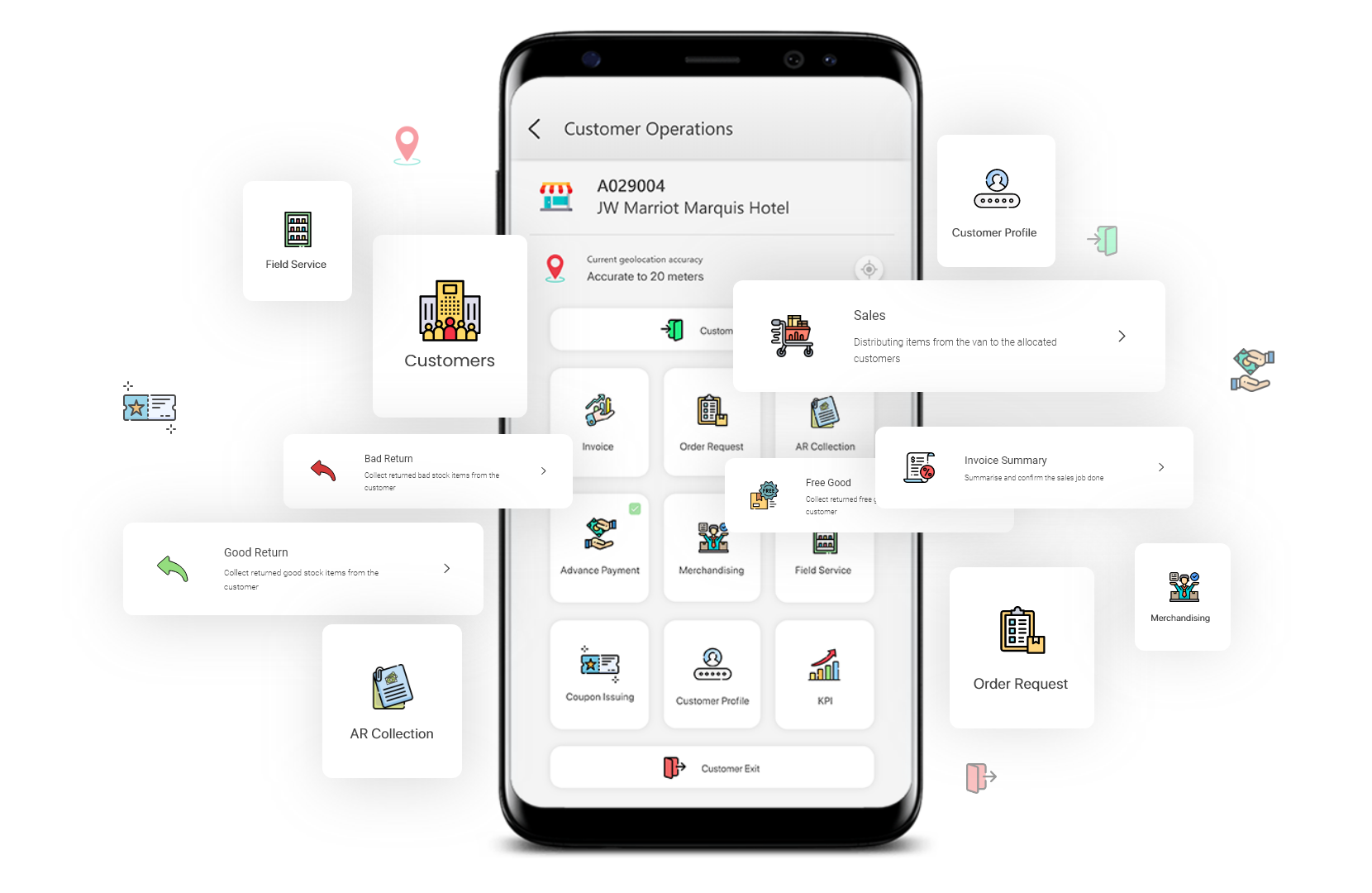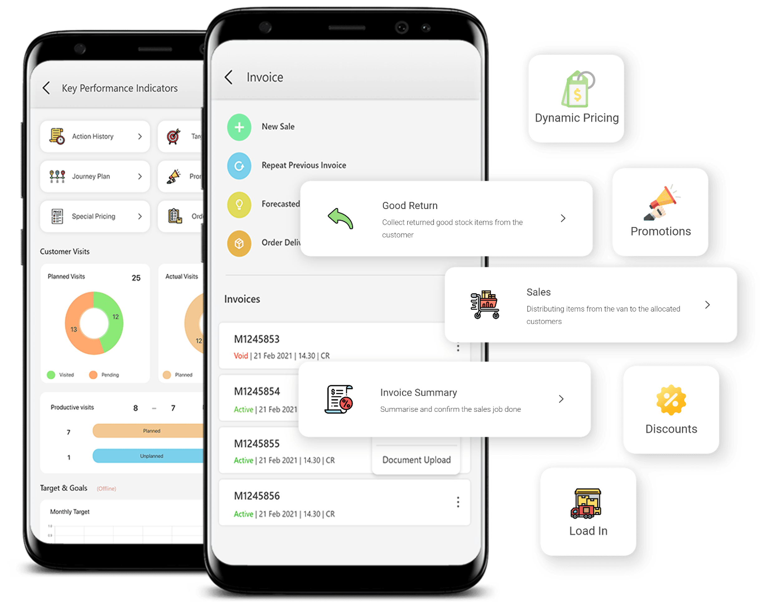 A fully digital (paperless) integrated solution for manufacturers & distributors to automate their sales and distribution process, which includes operational tasks like Invoicing, Order Taking, Delivery, Collection with Analytical Insights within a mobility enabled platform integrated to any ERP environment with improved accuracy & efficiency
