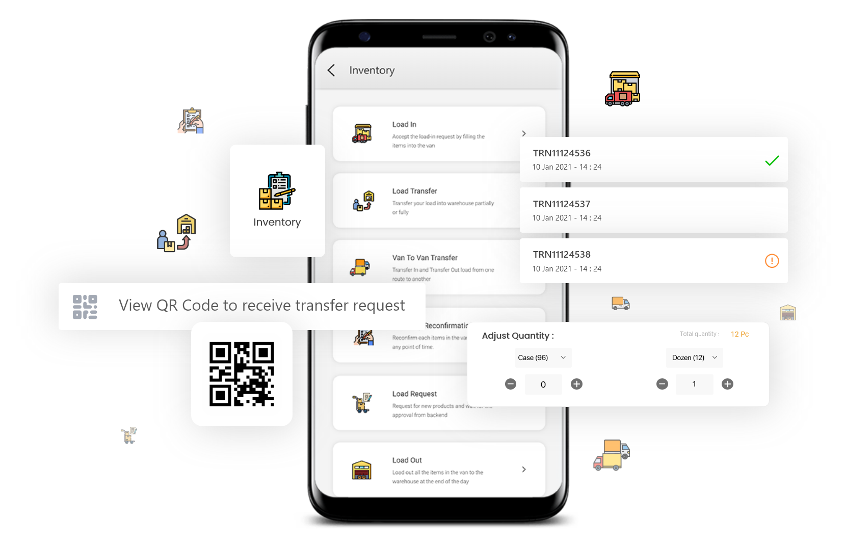Control & track Stock. Load In, Load Transfer (Offload), Van to Van Transfer, Inventory Reconfirmation, Load Request, Load Out. Change in SKU Quantities (Load-In, Delivery & Load-Out) with Approval workflow